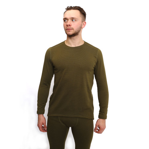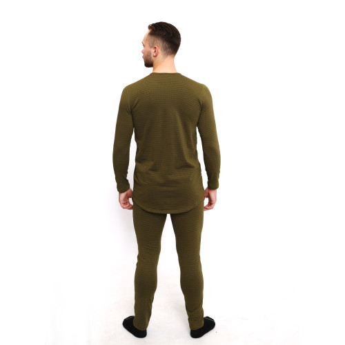Цей зимовий комплект натільної білизни, що включає нижню сорочку та кальсони, виготовлений з гладкопофарбованого трикотажного полотна. Він забезпечує комфортне прилягання та ідеальне збереження тепла навіть у найхолодніші дні.