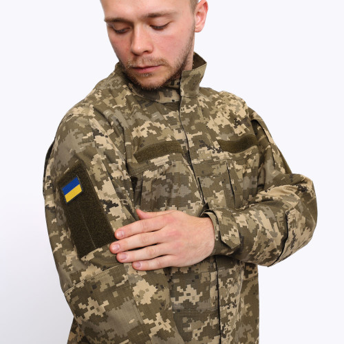 - Кріплення для ідентифікаторів: На кокетках пілочок над кишенями нашиті смужки текстильних застібок типу "петлі", по одній на кожній кокетці, для кріплення знімних ідентифікаторів.