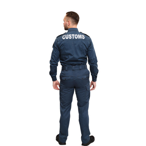 Костюм "Митниця" — ідеальний вибір для професійної діяльності у складних умовах. Цей комплект складається з сорочки та штанів, виготовлених із міцної змішаної або синтетичної тканини темно-сірого кольору. Завдяки своїм характеристикам, костюм забезпечує комфорт, функціональність і стиль.
